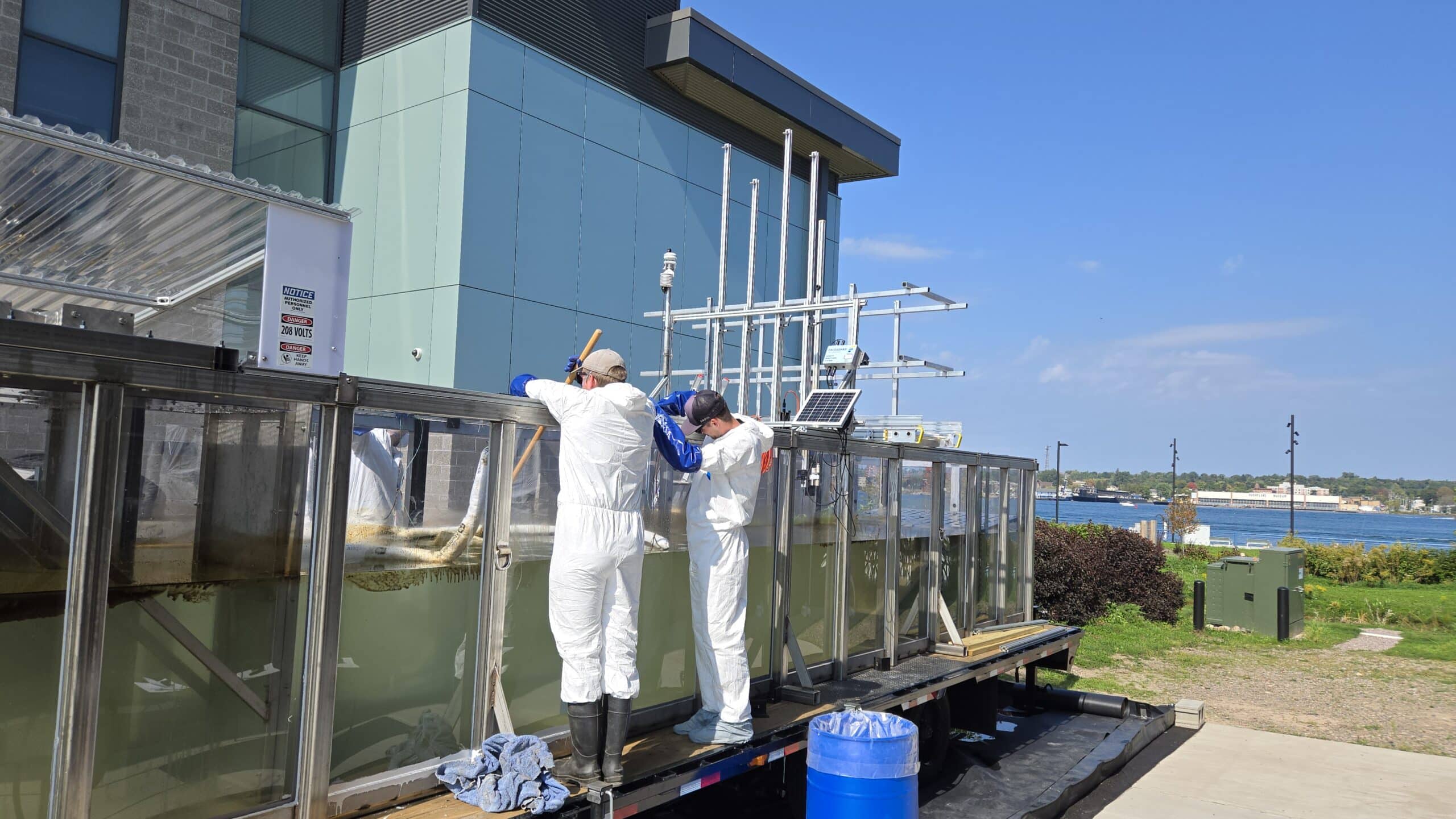 Zach Gordon, Product Engineer at Freeboard and LimnoTech, led the design, build, and installation of the wave maker. Taking into consideration the project’s current needs and potential future applications, Zach designed a wave maker that provided both reliability and flexibility. This involved a stringent mechanical review, functional reviews with Lake Superior State University, and seeking specialized expertise from both a controls engineering company and a local machine shop, which contributed to the finished product. The wavemaker was installed, and initial testing was performed in August of 2025, followed by extensive further testing during the first oil trials the following month.